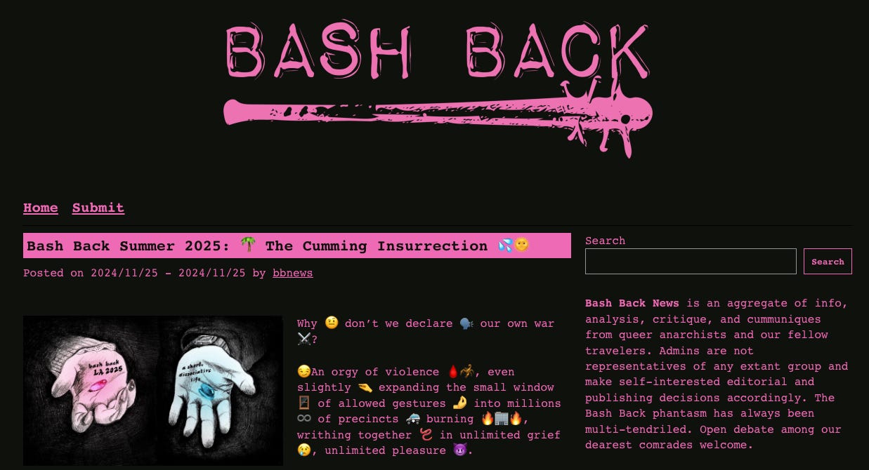 Bash Back is Back: The Violent Queer Insurrection Reconstitutes for 2025 and Beyond