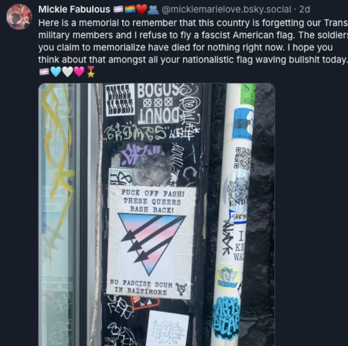 In April 2025, Bash Back flags surfaced at a Turning Point USA event. Naturally, TPUSA misidentified them as Antifa. While there is certainly overlap, Bash Back is its own entity. It’s a standalone movement, explicitly obsessed with sex and violence as revolutionary tools.