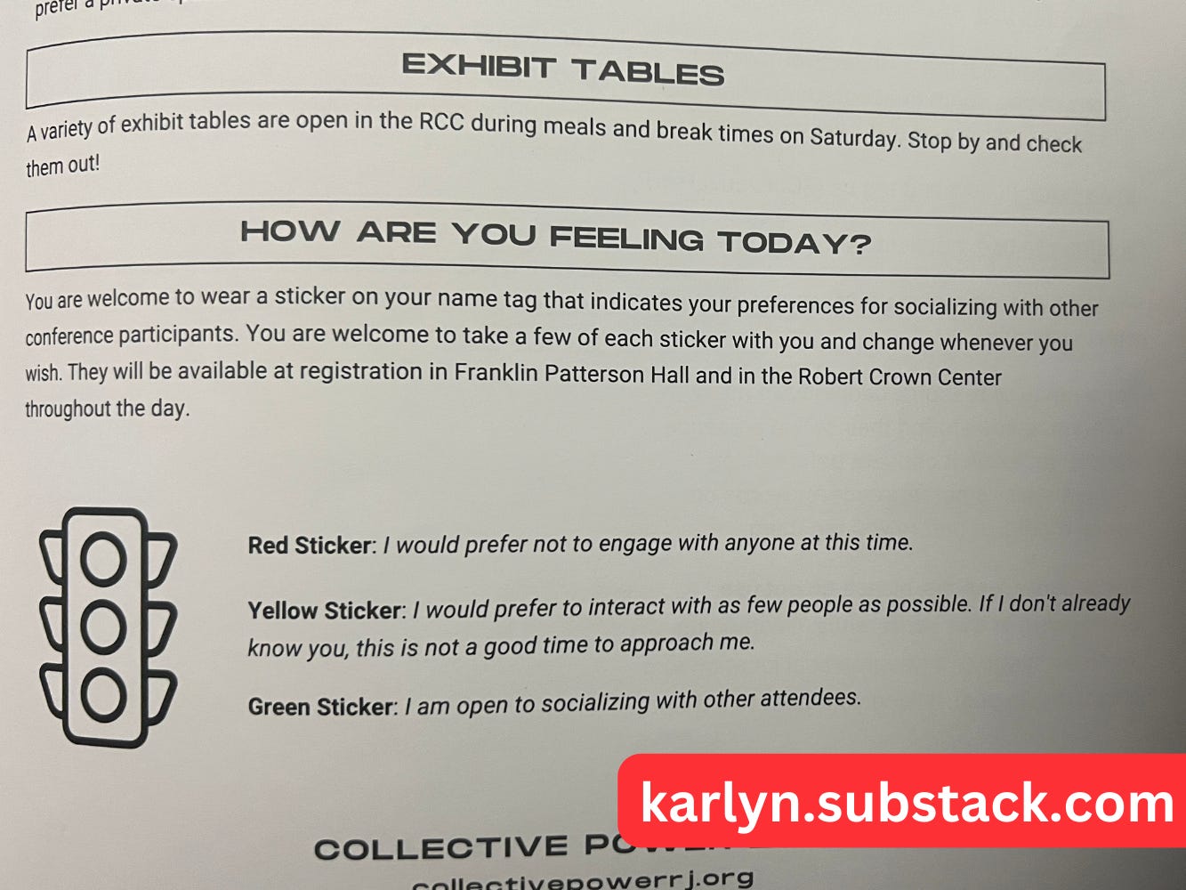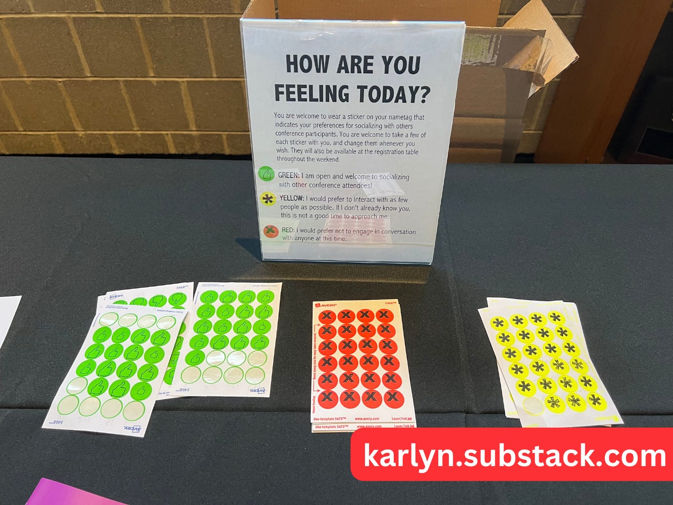We were also allowed to select a sticker to place on our nametag to let people know whether or not we felt like talking and meeting new people. We were allowed to change our sticker throughout the day as our mood changed.