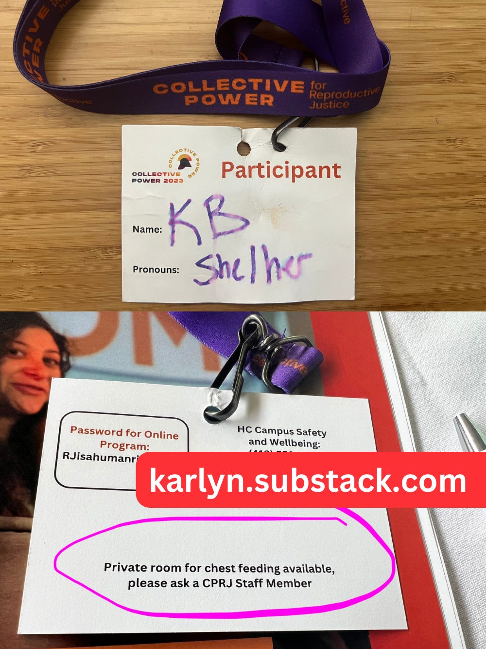 On the back of the nametag, it was noted that there were private rooms for “chest feeding.” How considerate!