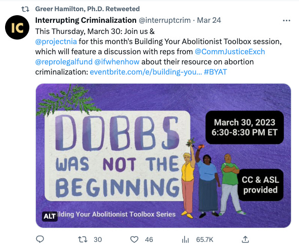The same fascist policies and ideologies that oppress transgender people are responsible for abortion bans. Our map to liberation is shared and our struggle is interconnected. In this workshop Black Feminist Future’s Yemi Combahee will present a mapping project made in collaboration with Transgender Strategy Center) of the shared political landscape that repro justice and gender justice share.
