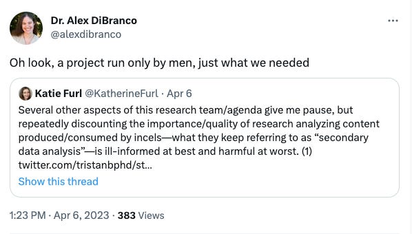 Alex DiBranco (she/her): The executive director and co-founder of the Institute for Research on Male Supremacism. She provides training, advice, and consulting on male supremacist ideology for social justice organizations and interviews with the media. DiBranco received her Ph.D. from Yale Sociology for research on U.S. right infrastructure and is a fellow with the Pop Culture Collaborative and the 22nd Century Initiative.
