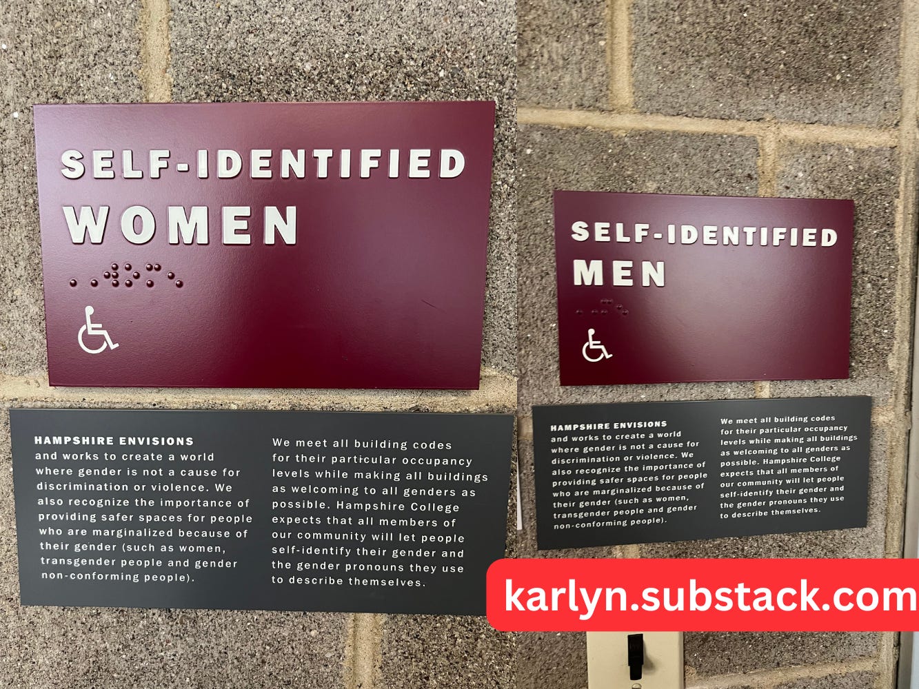 I also couldn’t help but notice the permanent signs for the bathrooms in the building were for “self-identified” women and men.