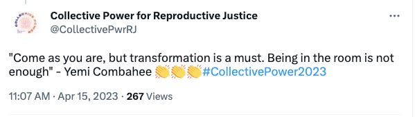 Yemi Combahee (she/her): A Black Queer Femme liberation strategist, abortion advocate, and reproductive justice organizer, the Constellations Hive organizer at Black Feminist Future where she builds Black feminist power for reproductive justice.